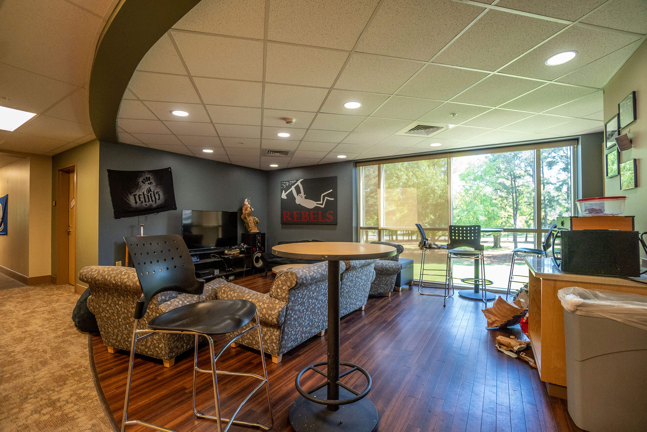 托马斯宿舍是适合学生学习娱乐的场所。一楼两侧各配有一个小休息室,二楼和三楼个有一个较大的休息室,除了这些,楼层里还额外配有电玩游戏设施与钢琴。